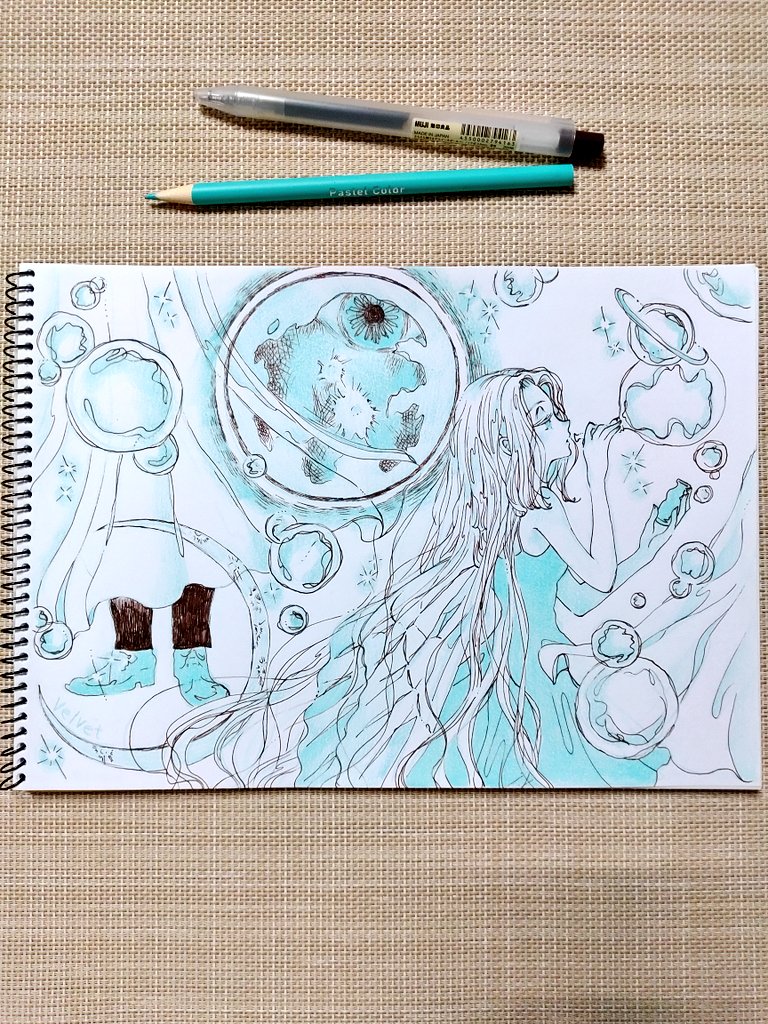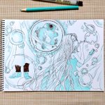 2 51 深い祈り🫧🌛 海月と少女を描いてコラージュしました💫 #コラージュ好きな人と繋がりたい #イラスト #水彩ペン #コラージュ #絵描きさんと繋がりたい 22/08/08 20:52