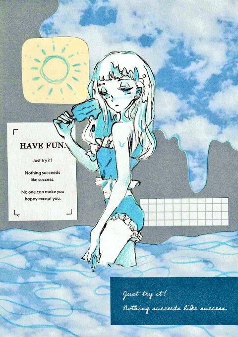 0 24 真夏のblue🏖️✨ #コラージュ #コラージュ初心者 #イラスト #色鉛筆 #紙もの 22/07/31 18:26
