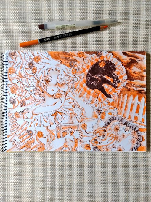 0 14 オレンジの夏日☀️ スキャンしてみました😊 #コラージュ #イラスト #折り紙 22/07/26 16:09