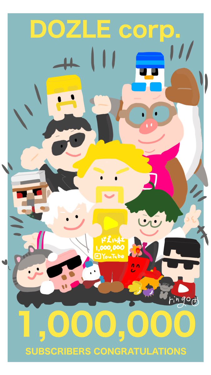 ドズル社登録者100万人おめでとうございます☺️🤍いつも楽しいをありがとう!!!最高のチャンネルに出会えて幸せです✨✨だいすき!!!!!!!♡♡♡ #ドズル社100万人記念 #ドズル社アート