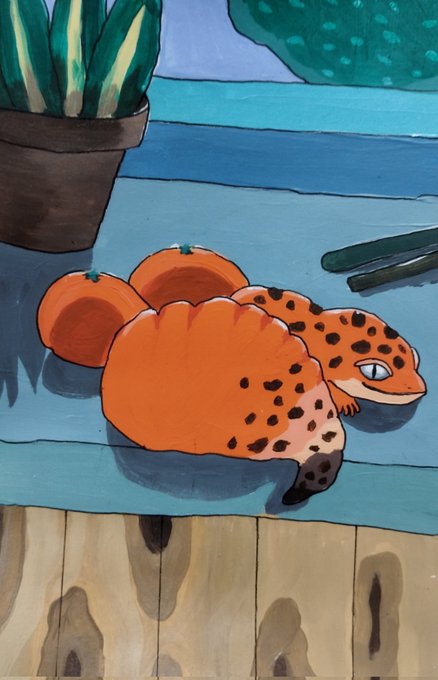 0 8 みかんとレオパ #レオパ #イラスト #爬虫類 #ヒョウモントカゲモドキ 22/08/16 07:12