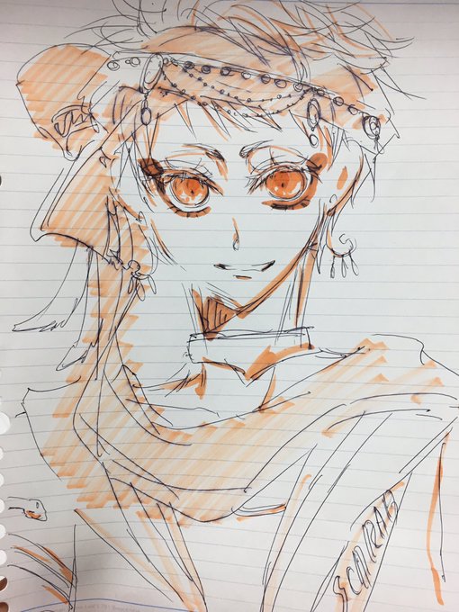 #ツイステファンアート アートってゆーか、手元にルーズリーフがあったので落書き(笑) ジャミルの眼のお化粧だけが描きたかったので他はいつも通りざざざっ(笑)