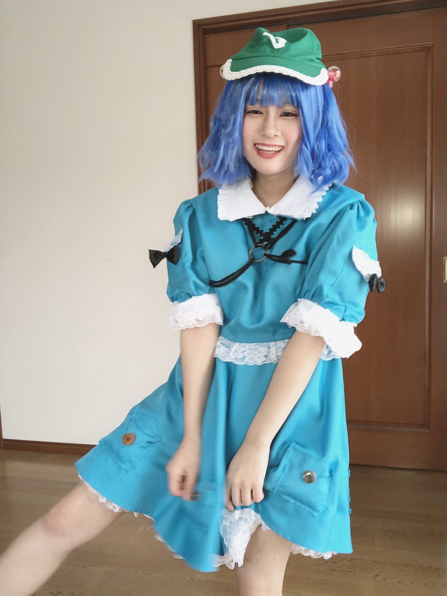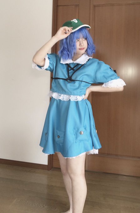 にとり衣装できたあああああ!!!!👗👗玉結びの練習から始めた私ですがなんとか形にはなった、、😌また作りたい! #河城にとり #アレンジ衣装 #cosplay #東方project
