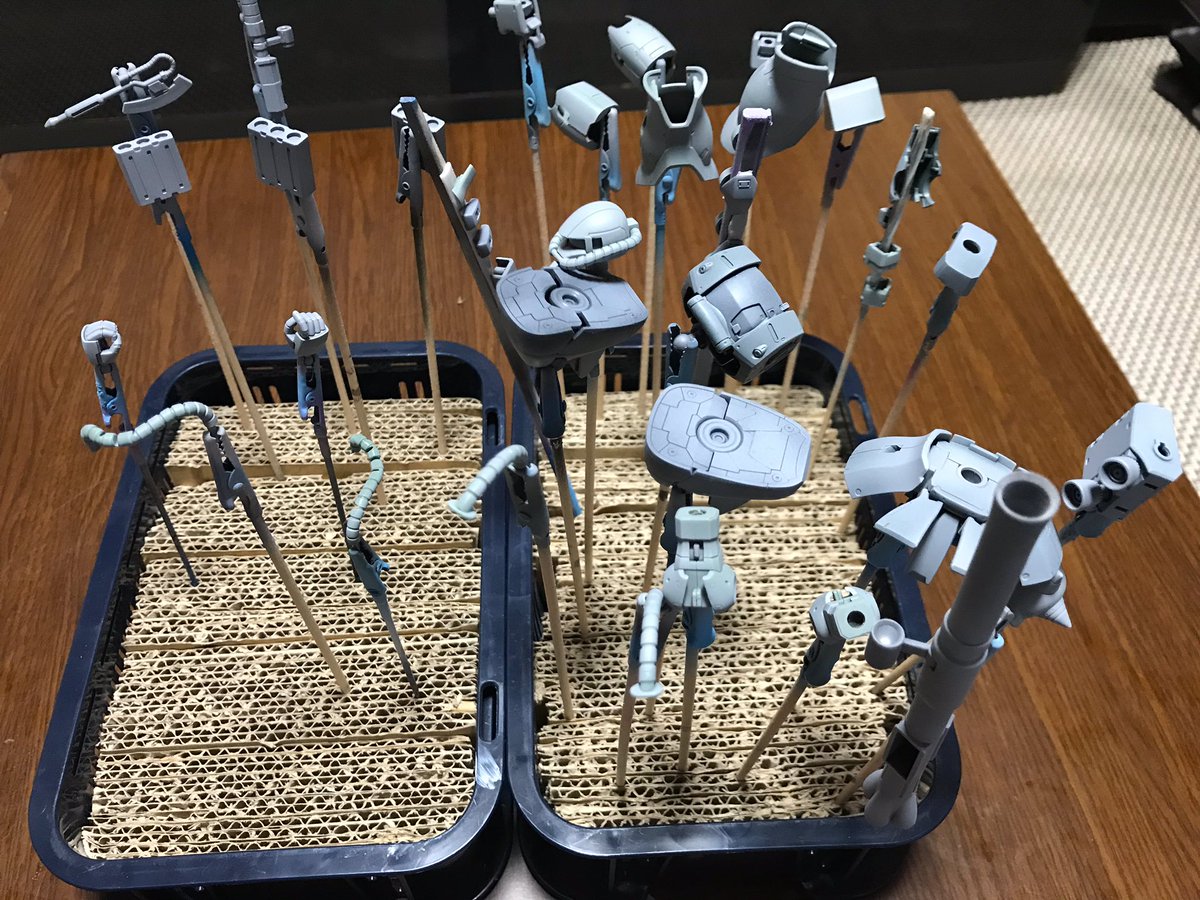 2 13 やっとサフ吹けました😊 早く完成させないと・・ 只今、4人が待機中😭 #ガンプラジオ #ガンプラ 19/09/16 13:43
