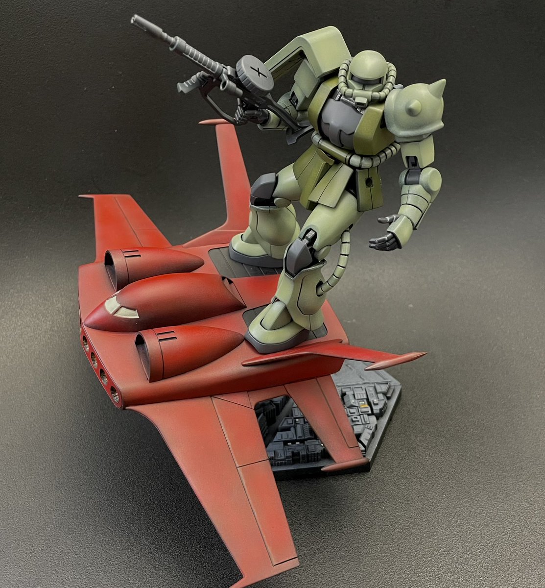 ザクⅡ 塗装終了したのに、Zガンダム組み立ててしまった。 まだ他に塗装待ちがあるのに何やってんだろ・・・・・・ けど変形MSって何気にカッコイイ😁 #ガンプラジオ #ガンプラ