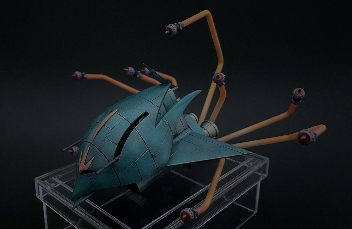 12 134 旧キット エルメス ビットのエフェクト完成です😊 箱絵のララァも飾ってみました #ガンプラジオ #旧キット #ガンプラ 22/09/25 08:03