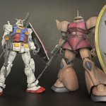 HG シャアゲル モノアイ付けて完成です😊 シャアとアムロで撮影してみました #ガンプラジオ #ガンプラ