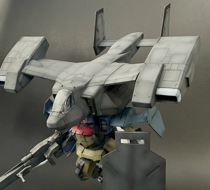 1/72 ストークキャリー 基本塗装が完了しました😊 ロボットと合体させてみました #ガンプラジオ #境界戦機