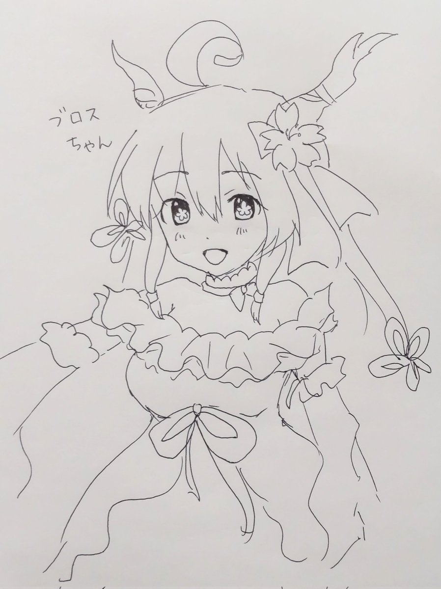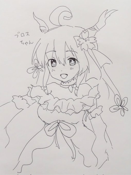 さっき副団長で出てきたのでブロスちゃん初描きしてみました(。☌ᴗ☌。) 色々省いてあるので伝わるか分かりませんが💦 でもやっぱり愛はある(๑•̀ㅂ•́)و✧ #花騎士 #フラワーナイトガールイラスト