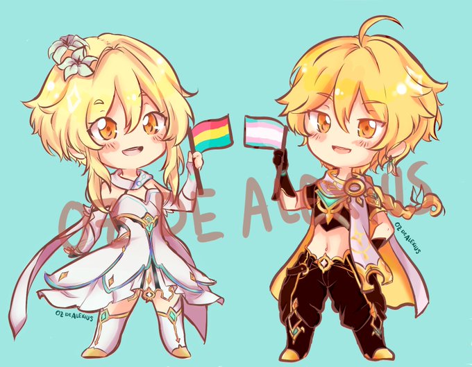 Happy Pride Month! I am actually still not done with my actual pride month project but BUUUT here are some cute Tabibitos that I plan to be giving away <3 as stickers. I hope everyone enjoys! #GenshinImpact #Lumine #Aether #pansexualpride #transpride #LGBTQ #Genshinimpactfanart