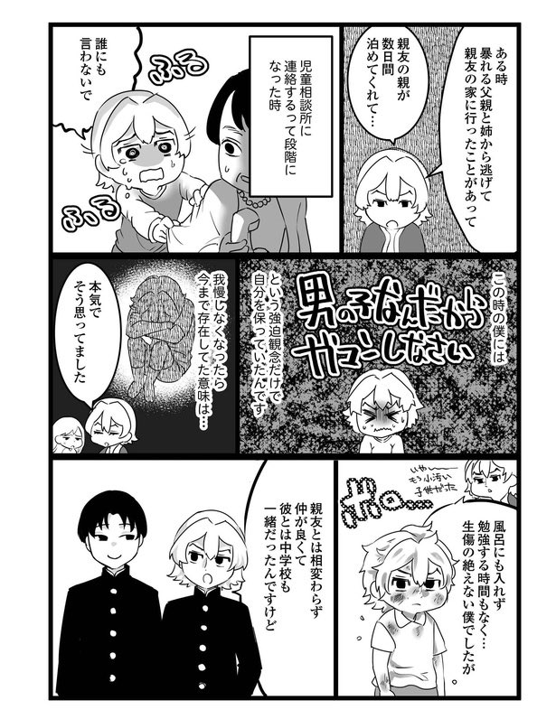 辛い体験も"なかったこと"にされる「男なんだから我慢しろ」の呪縛の話。(1/4) ※虐待と性被害の描写があります #漫画が読めるハッシュタグ