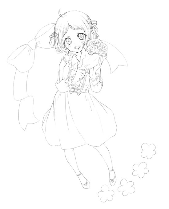 1 14 塗るの下手だから線画のが可愛いの見てほしい☺️ #D4DJ絵 #竹下みいこ生誕祭2021 21/02/22 22:22