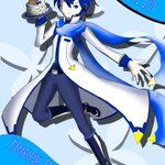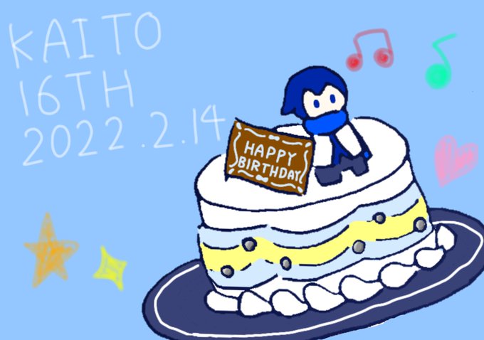 兄さん誕生日おめでとう‼︎ 誕生日イラスト1枚目🎁 アイスケーキの上に立ってもらいましたー🍨🎂 #KAITO #KAITOお誕生会2022 #KAITO生誕祭2022 #KAITO誕生祭2022