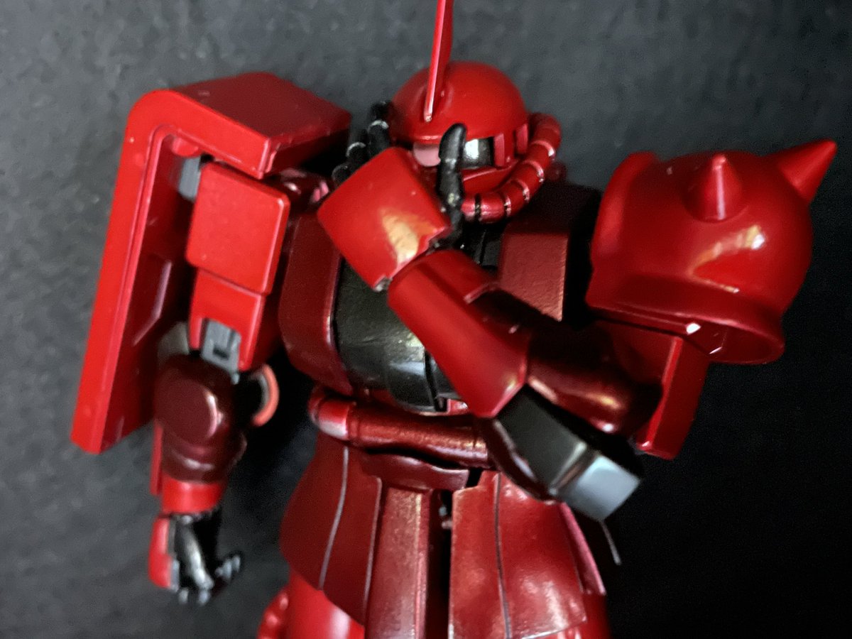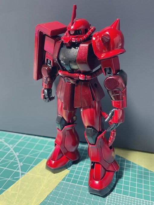 シャアザク完成! キャンディしたのにiPhoneではちゃんとキャンディに見えない… 下地のシルバーが軽かった? 次はもっと深い色になるよう精進します💪 #ガンプラ #ガンプラ好きと繋がりたい #ガンプラの画像貼るとRTされると聞いて