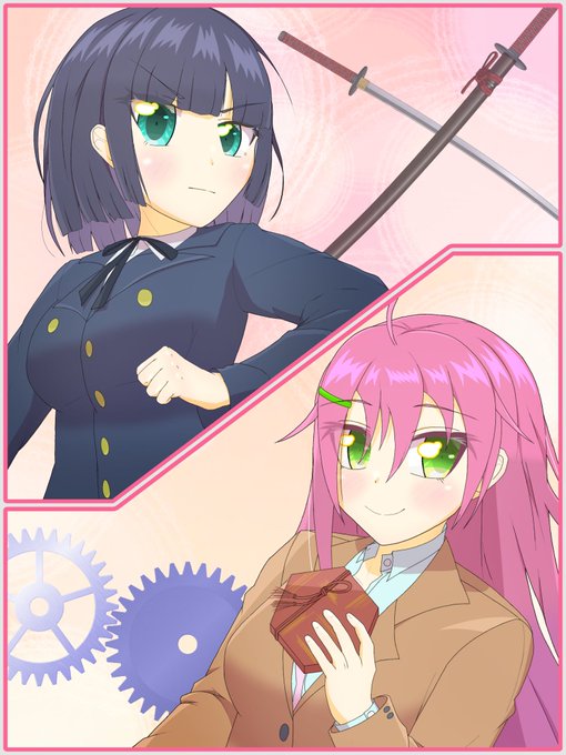 #バレンタインイラスト #バレンタインデー #オリジナルリリィ 私のオリリィ/焔華鈴(ほむらかりん)目線のSSです。(6/6) inafuさん(@inafu15)のオリリィ/九鬼晶(くがみあきら)さんにも登場してもらっています。 イラストも描かせていただきました。勝手にインナーカラー気味にしてみました💦