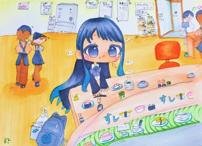 2 3 うまく描けました! 貼り紙とか、そーゆー細かいところも見てくれると嬉しいです!! #Ado #すし🍣 #コピックイラスト #コピックチャオ #アナログイラスト #イラスト 22/08/04 14:01