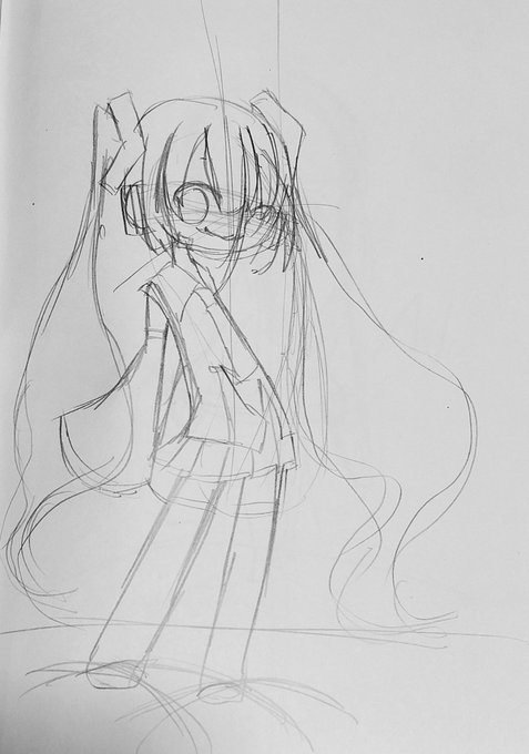 初音ミク下描き! #初音ミク #イラスト #アナログイラスト