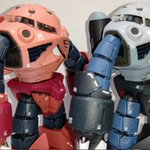 #今月作ったプラモ晒そうぜ 4月はRGシャア専用ズゴックと同じくRGシャアズゴを塗り替えた量産型ズゴックの2機。 特にオリカラ量産型は大満足! 今月は模活がんばったな。 #ガンプラ #ガンプラ好きと繋がりたい