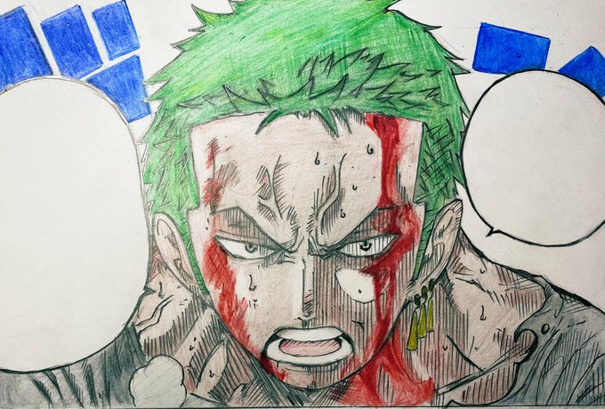 5 34 久々に模写して、色鉛筆で色塗りしてみました〜 #絵描きさんと繋がりたい #絵師さんと繋がりたい #模写 #ワンピース #ゾロ 21/11/01 17:33