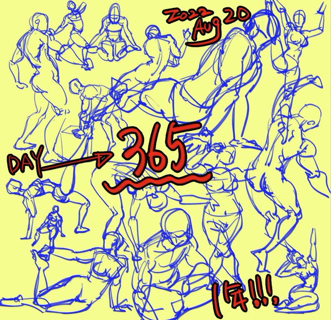 今日の練習 Day365 ヤッターー^0^、一年達成!! 身体60秒ドローイング #lineofaction #スケッチ #絵の練習 #デッサン #絵 #イラスト #クロッキー #メイキング #character #sketching #drawing #draw #illustration #portrait