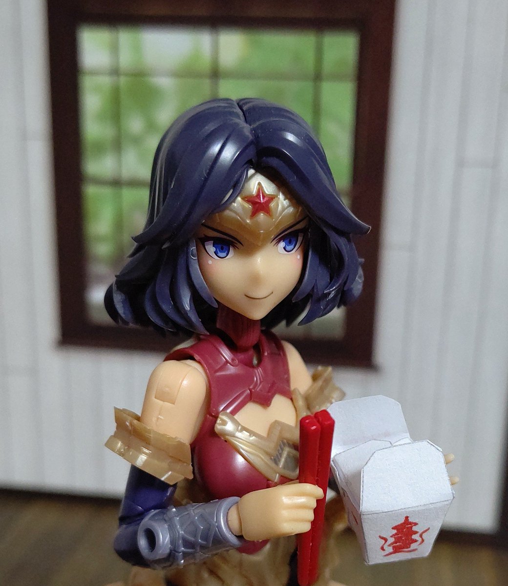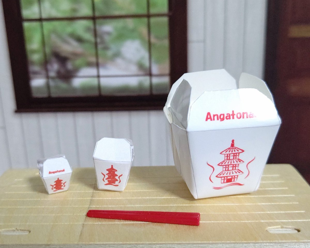 #フレームアームズ・ガール #ペーパークラフト 以前に作った、テイクアウトボックス、1/12サイズに作り直しました。 ( ´ ▽ ` )ノ 大中小の中が一番それっぽいですね。 アメコミヒーローだから持たせだけど、そういやダイアナちゃん、アメリカ人じゃなかった。(ーωー)