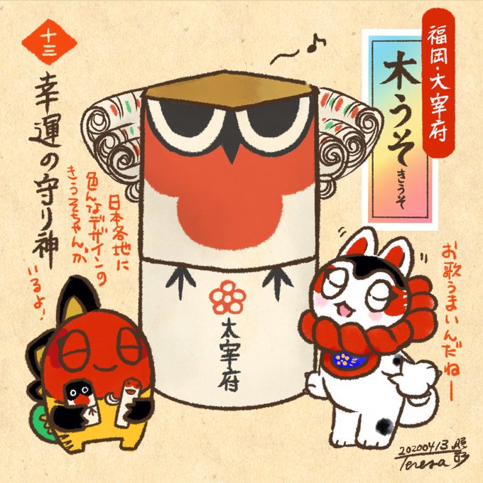 [13:木うそ(太宰府の郷土玩具)] 木うそは鷽(うそ)という鳥が木にとまっている様子を表したお守り的郷土玩具。天満宮で行われる「うそかえ」神事で、一年中の嘘を神前で誠に取り替えて罪滅ぼしをするために用いられると言われています。幸運の守り神とも呼ばれてるのだとか✨ #お絵描きお百度参り