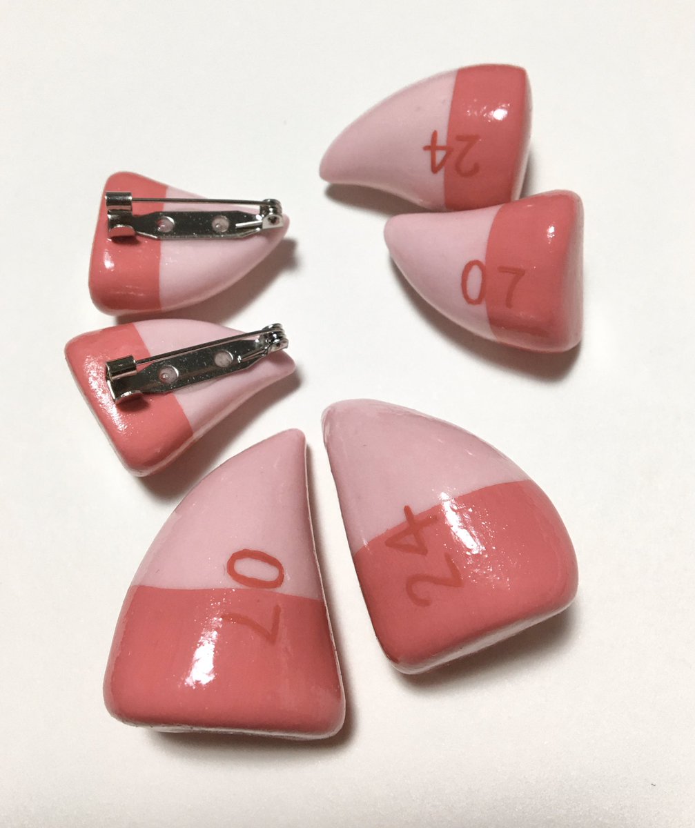 鬼ちゃんのツノできた〜!! 黒い帽子とかニット帽に付けたら可愛いかなと思ったのだけど、コロンとしたフォルムにしようと思ってふっくら作ったら分厚くしすぎた感。 #へんたつ #irodori工作班
