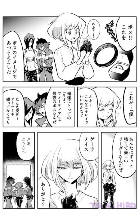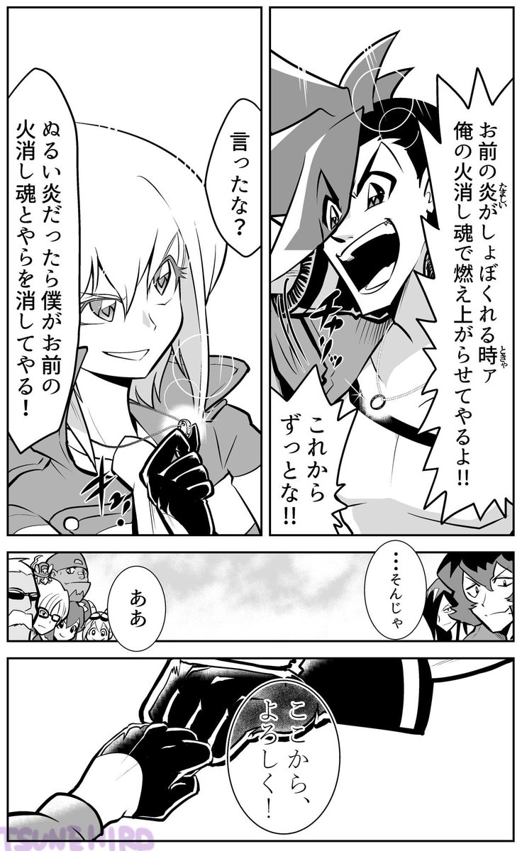 今日のプロメア漫画。Stay,with me! 指輪の話。ガロ&リオの話完結篇ってイメージで描きました。 #つねひろのラクガキ #プロメア もう一周年。友情とはいえ、まさかこのタイトルをつける羽目になろうとは。