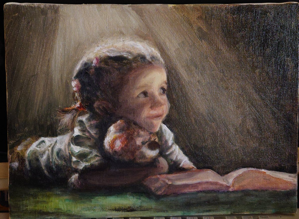 0 10 進捗3 表情や雰囲気も定まってきた。 #油絵 #イラスト 22/06/17 09:30