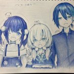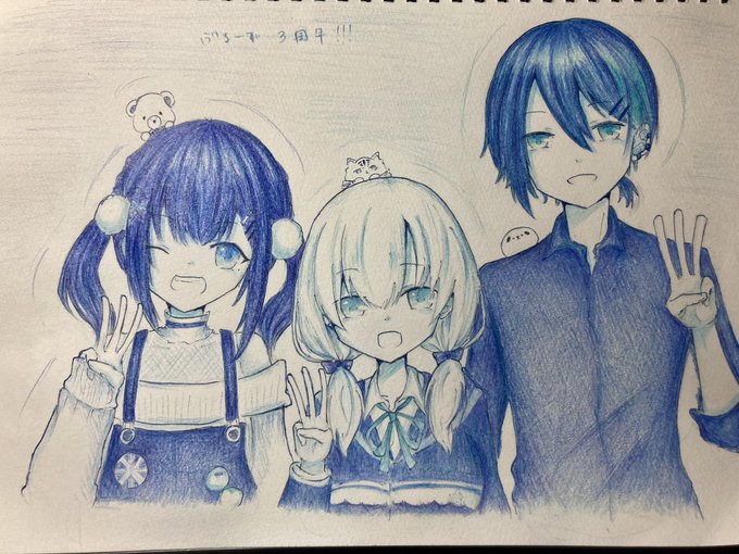 ぶるーず3周年🎊🎉👏 3人がぶるーずでよかった! #ういはぁーと #マル描いてちょんっ #灰画