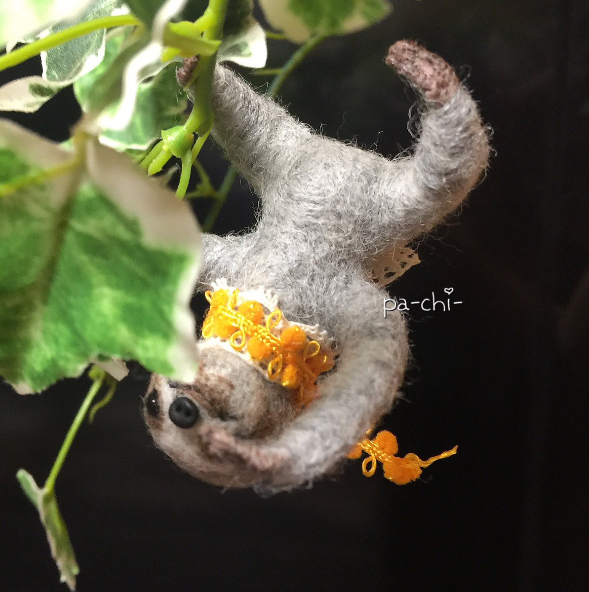 ちくちく! 新しい子はどんな子になるのかな〜 と、ナマ子ちゃんが楽しみにちくちくしております(°▽°) #羊毛フェルト #ナマケモノ