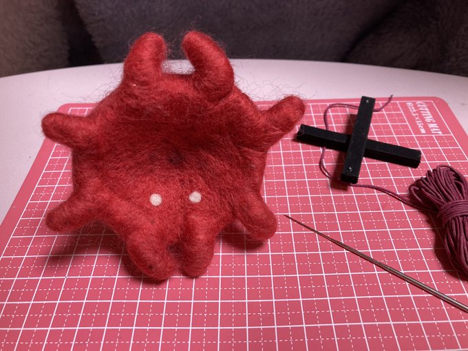 3 17 吸盤プチプチ〜! もうここまでくれば何を作ってるのか想像できますね(*´꒳`*) お友達に渡してからTwitterで完成アップします(๑˃̵ᴗ˂̵)✨ 可愛い子ができたので、喜んでもらえるといいな〜 #羊毛フェルト #メンダコ 21/11/11 22:12