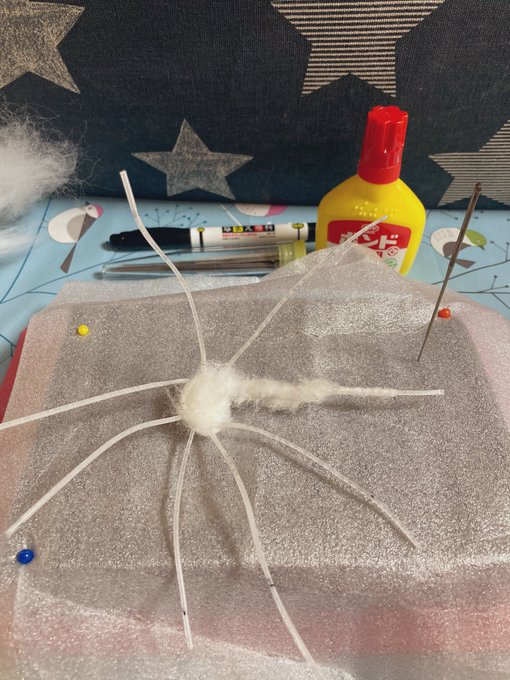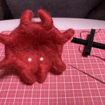 吸盤プチプチ〜! もうここまでくれば何を作ってるのか想像できますね(*´꒳`*) お友達に渡してからTwitterで完成アップします(๑˃̵ᴗ˂̵)✨ 可愛い子ができたので、喜んでもらえるといいな〜 #羊毛フェルト #メンダコ