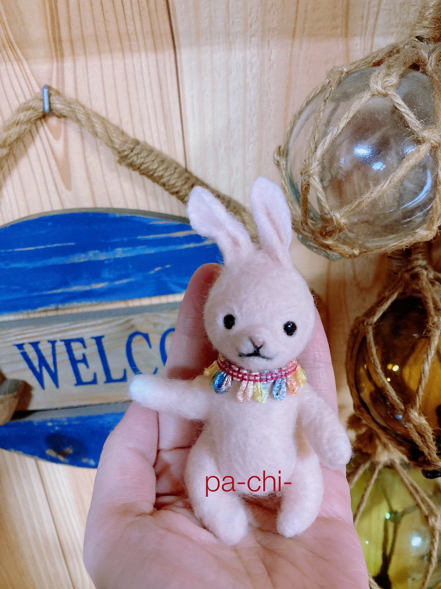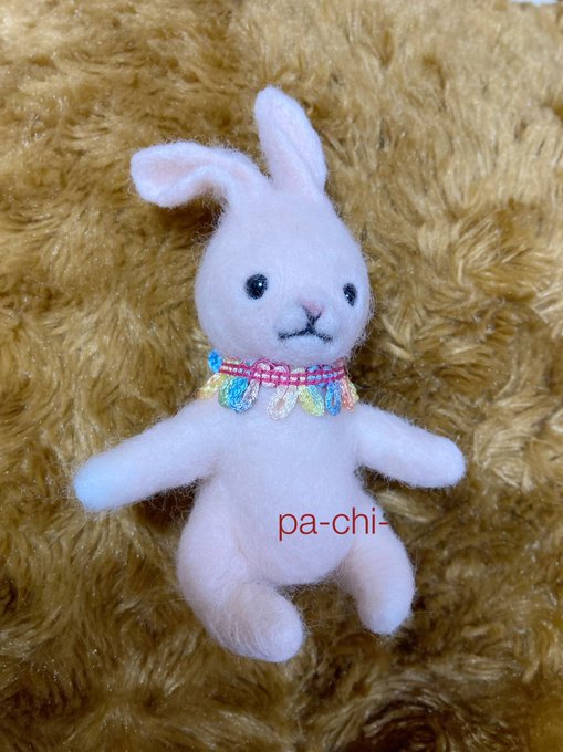 2 24 娘ちゃんに頼まれたうさぎ完成しました☺️ 本当だったら、植毛してモフモフに!鼻手足も針金やら樹脂粘土やらやるのだけど、小さい子でも遊べるようにテクノロートだけ仕込んでシンプルな作りにしました^_^凄く喜んでもらえて嬉しいです^_^ #羊毛フェルト #うさぎ 21/12/10 10:38