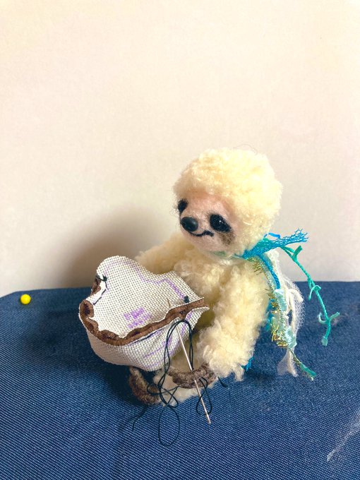 1 16 ちくちく! 新しい子はどんな子になるのかな〜 と、ナマ子ちゃんが楽しみにちくちくしております(°▽°) #羊毛フェルト #ナマケモノ 21/12/13 22:02