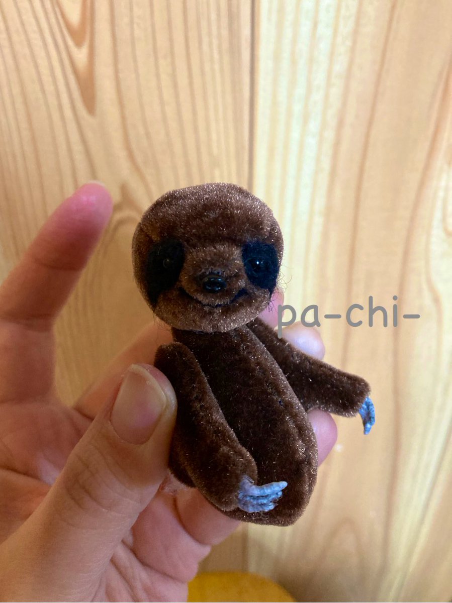 親指姫ならぬ、親指ナマできました♪ いつもより大きめの親指くらいの大きさです^_^ 首はジョイントが入ってるので360度回転しますよ〜グルグル♪ 手足はテクノロートはいってるので少し動かせます! 後日ミンネに出します^_^ #羊毛フェルト #ナマケモノ #ミニチュア