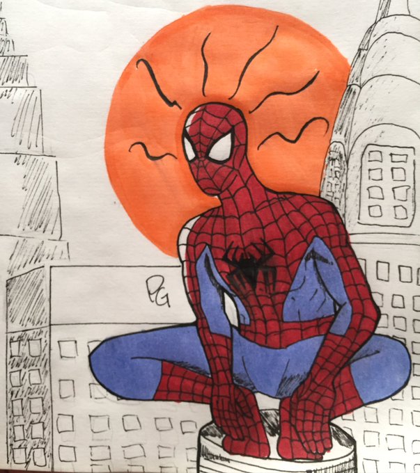 Day 13: Roof! I love Spider-Man so much idk why I haven’t drew him already 💕 #inktober2021day13 #inktober2021 #spiderman #spidermannwh #marvel #fanart #art #draw