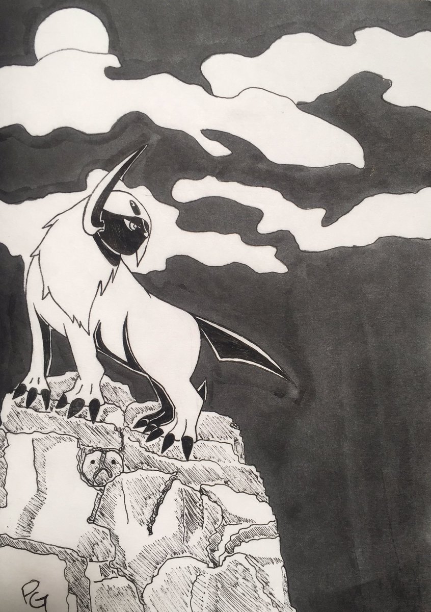 Day 9: Pressure! It is said Absol appears every now and then just before a disaster occurs 😰 #inktober2021 #inktober2021day9 #art #pokemon #draw #drawing #absol