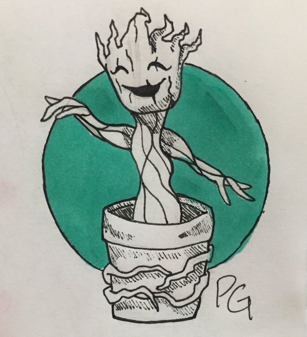 Day 20: Sprout! 🌱 I am Groot! I am Groot... I am groot:D 🕺🏻 #inktober2021 #inktober2021day20 #inktober #draw #art #groot #babygroot #marvel #marvelfanart #gotg