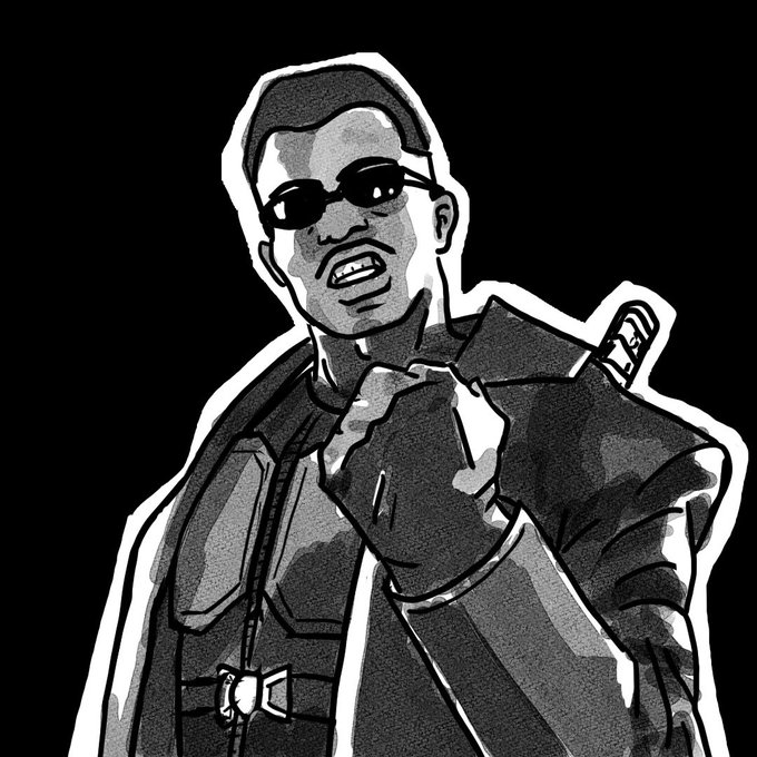 #inktober Day 3, open season on all suckheads! I started watching Blade, loved the opening sequence, spent the next hour and a half drawing this still from it. #inktober2022 #CLIPSTUDIO #blade #vampire #hunter #wesleysnipes #daywalker