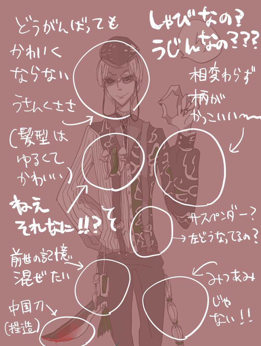新衣装を見て瀕死でまとめた……これは…ムジョさんなの……?って震えながら……きっと自分では手を下さないんだよね……胸の緑のやつなに?翡翠?裏世界の王様なの??何者なの!?ねえ!!!(実装楽しみです!!!) (※一部衣装捏造) #第五人格イラスト #identityVイラスト