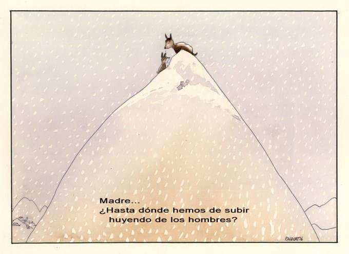 Mi viñeta de hoy. Tienen tanto miedo al humano que a veces no se dejan ayudar.