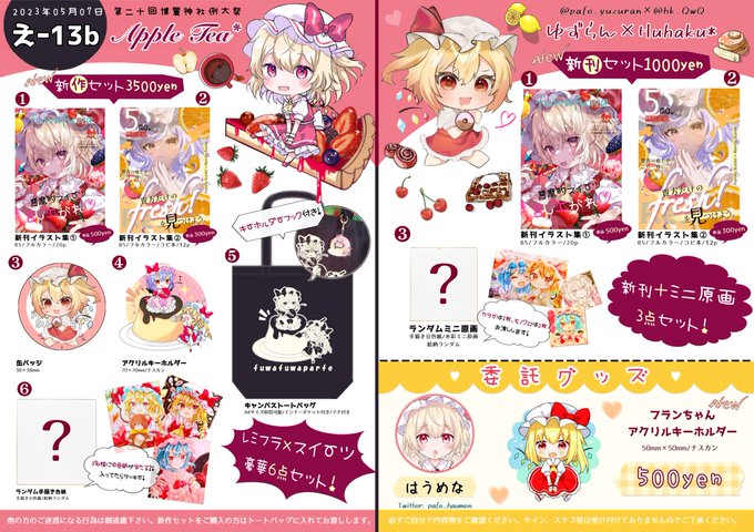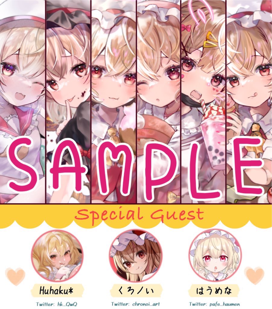 【例大祭20新刊サンプル】です!! フランちゃん×スイーツがテーマの描き下ろしイラスト本です🍰 今回は3名のスペシャルゲストをお招きしました♡ B5サイズ20p 500円で頒布予定です! スペース【え-13b】にてお待ちしております✨ #例大祭20 #東方Project