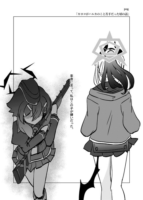 ブルアカ女女合同に寄稿したカヨハル漫画です。 「便利屋68結成直後に、こういう時期があったかも……?」なアレでして、よければどうぞ。 【カヨコがハルカのこと苦手だった頃の話】(1/2)