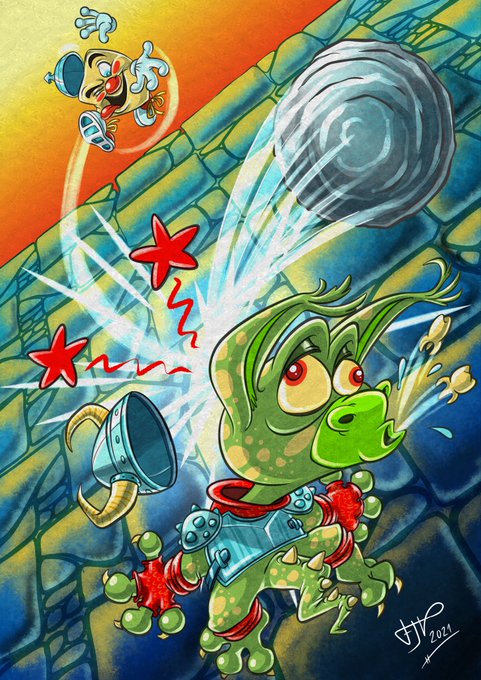 Día 17 #inktober2021 #inktober2021day17 #digitalart #digitaldrawing #digitalillustration #CLIPSTUDIOPAINT #RETROGAMING #cartoon #iPadPro Proceso en el siguiente Tweet.