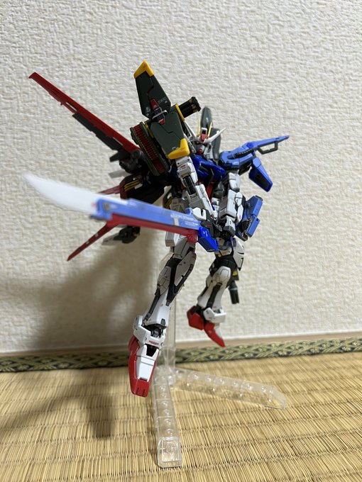 RG パーフェクトストライクガンダム 簡単仕上げのつもりが、部分塗装で、さし色を追加しまくってしまいました…おかげで情報量アップして気に入っています^_^ 流行りに乗って畳の上でパチリ #ガンプラ好きと繋がりたい #ガンプラの画像貼るとRTされると聞いて #ストライクガンダム #東京野郎
