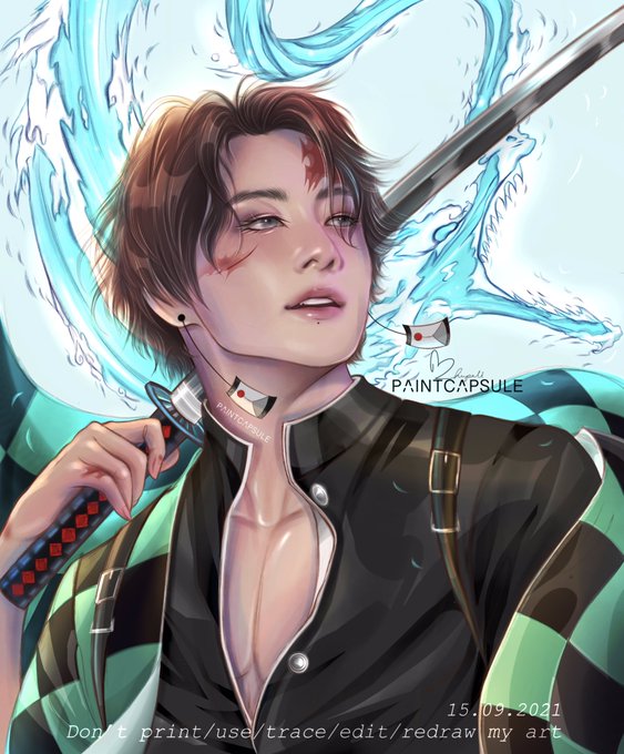 #JUNGKOOK X #tanjirokamado 👺 this is my personal favourite 😫 #Jungkookfanart #btsfanarts #DemonSlayer