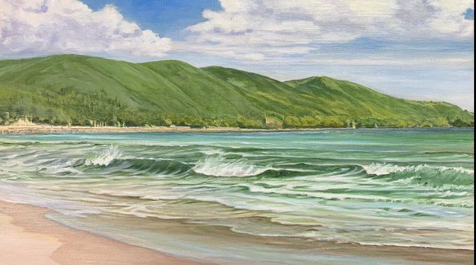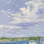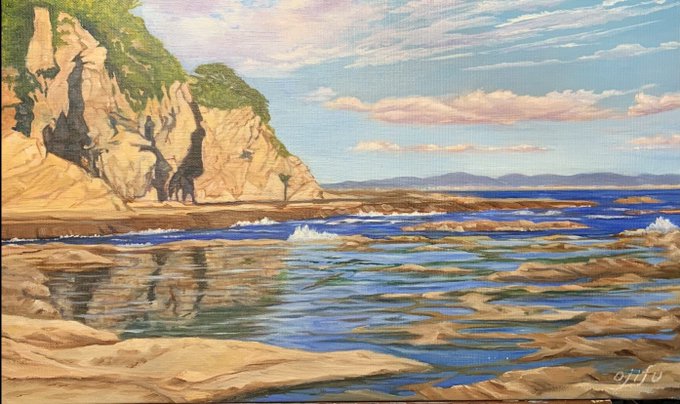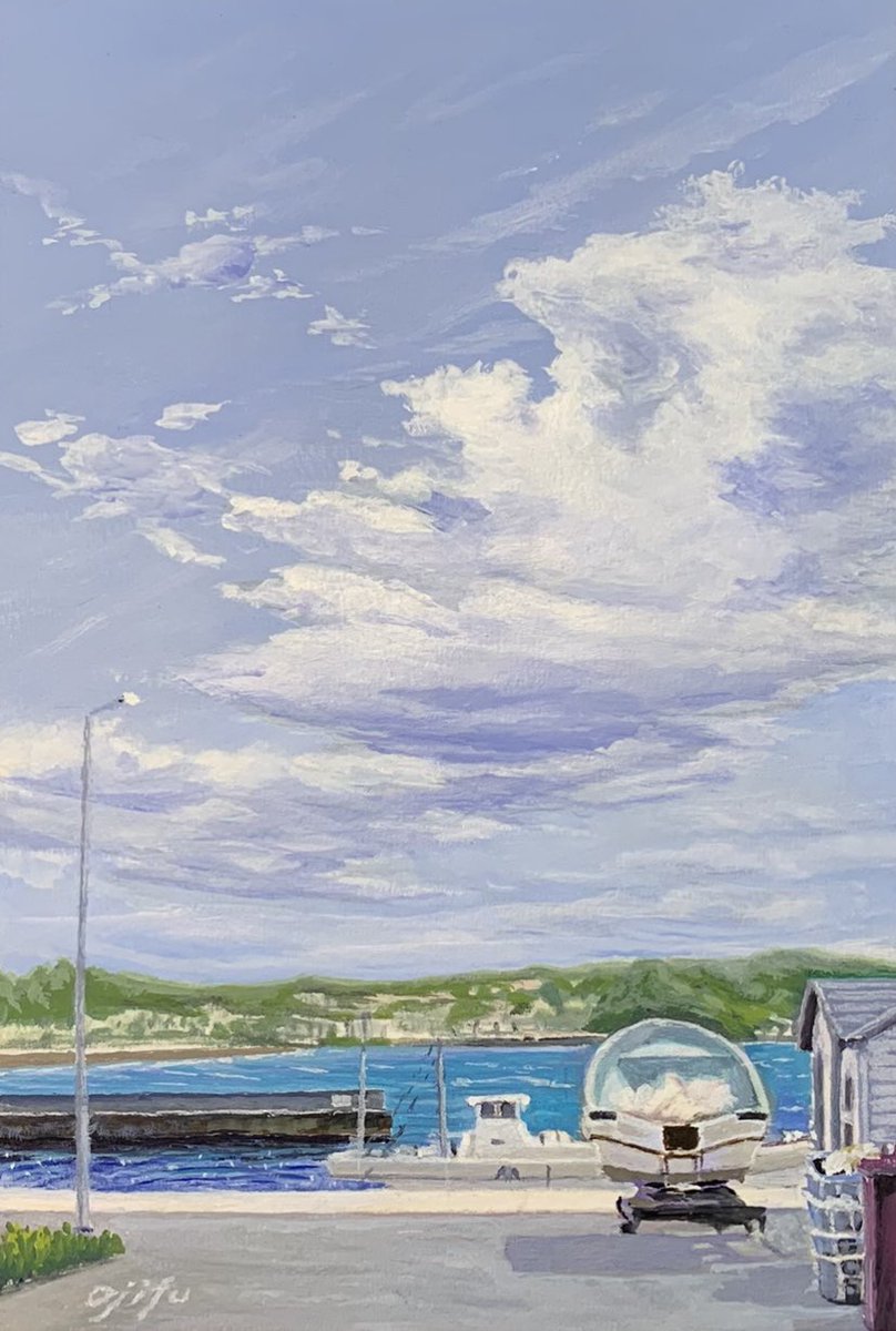 江の島散歩 島内を離れ江の島大橋に来ました、この橋の途中に江ノ島の裏側まで運んでくれる遊覧船乗り場があります。 今回はこの船着場辺りからの眺めを油彩で仕上げました。 #油絵 #oilpainting #アート好きな人と繋がりたい #イラスト #江ノ島グルメ oil on canvas M6