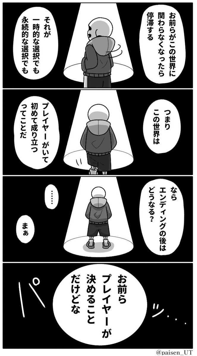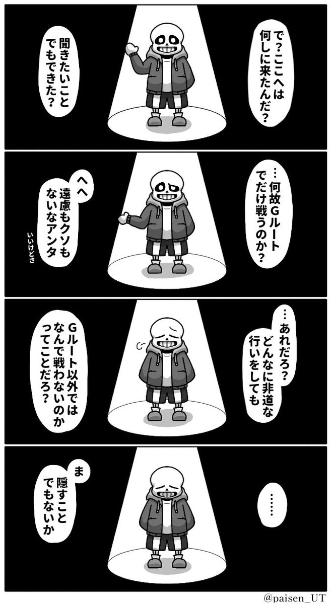 #undertale #sans ⚠ネタバレ、メタ、捏造、素人考察 何故サンズはGルート以外では戦わないのかを私なりに考察した話。 矛盾もあるしよく分からないこと言ってると思うので雰囲気で……見てください🥺 (1/2)
