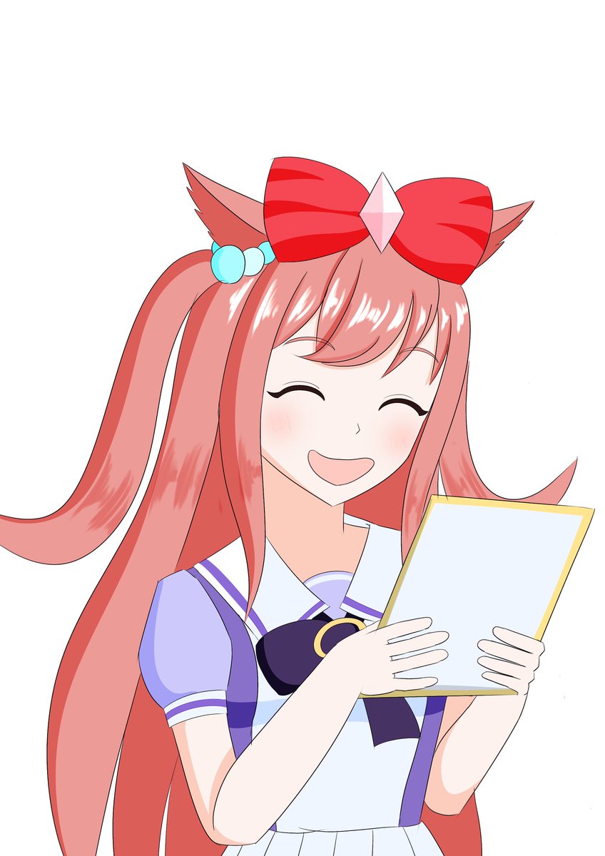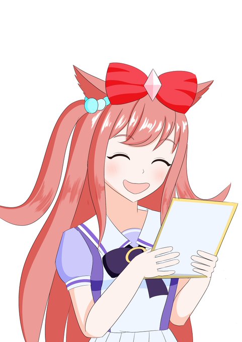 お題:にぱーとした笑顔 サインをもらってご満悦なデジタル 「にぱー」っていうより「にへらー」になった #ゆう犬ワンドロ